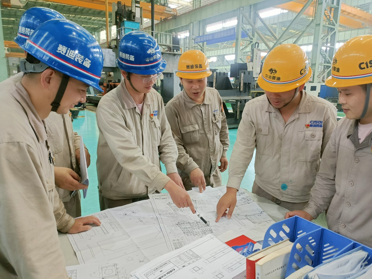 六安、盛隆連鑄項(xiàng)目黨員突擊隊(duì)由第三黨支部副書記、總裝車間主任廖靖擔(dān)任隊(duì)長,組員涵蓋設(shè)計(jì)、工藝、鉚焊、機(jī)加、裝配等專業(yè)。他們?cè)谧龊帽举|(zhì)工作的前提下,積極引導(dǎo)本部門員工響應(yīng)公司號(hào)召,突顯攻堅(jiān)克難精神。面對(duì)疫情所帶來的原材料回貨延期、多項(xiàng)目并行導(dǎo)致的工期緊張等方面的困難,突擊隊(duì)提前謀劃、統(tǒng)籌安排,有條不紊完成了前期的設(shè)計(jì)和工藝編排;生產(chǎn)攻堅(jiān)期間恰逢端午節(jié),團(tuán)隊(duì)放棄休假奮戰(zhàn)在各條戰(zhàn)線上,積極推進(jìn)督促、充分溝通協(xié)調(diào)、加緊生產(chǎn)制造,各項(xiàng)工作有條不紊推進(jìn)。