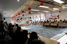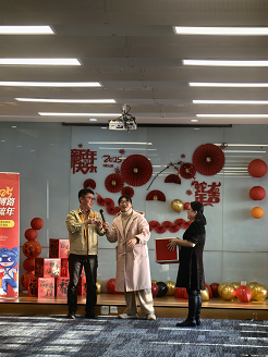 復城辦公區同樣熱鬧非凡。活動現場,彩帶、氣球、燈籠等裝飾品將空間裝點得溫馨而喜慶。隨著歡快的音樂,活動正式開始!罢胸斶M寶”箭指好運,“心有靈犀”考驗搭檔之間的默契,“妙語連珠”技巧與智慧并用,“珠聯璧合”展現平衡技巧,“幸運圓環”收獲滿滿驚喜。大家在歡樂、溫馨的氛圍中迎接新年的到來,共同創造美好的回憶。